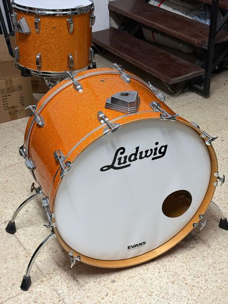Estamos restaurando una LUDWIG CLASSIC MAPLE GOLD SPARKLE com Bombo de 24, Tom aereo de 15, y Toms bases de 16 y 18.